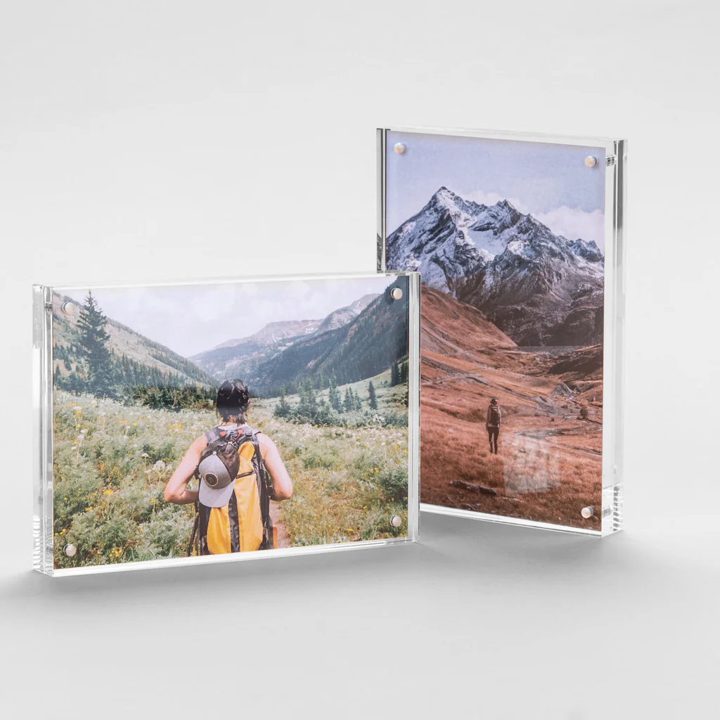 Showcase your memories effortlessly! This minimalist acrylic frame uses magnets to hold your photos in place, making swaps quick and easy. Smile!