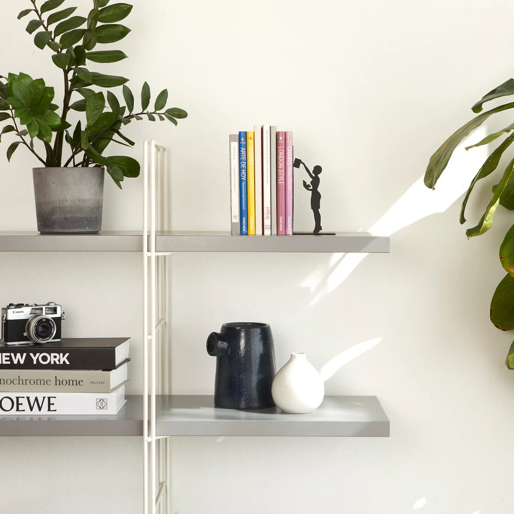 This bookend captures a quiet, charming moment—a woman delicately placing a book on a library shelf. It celebrates the joy of discovering new stories and the timeless love of litreature.
